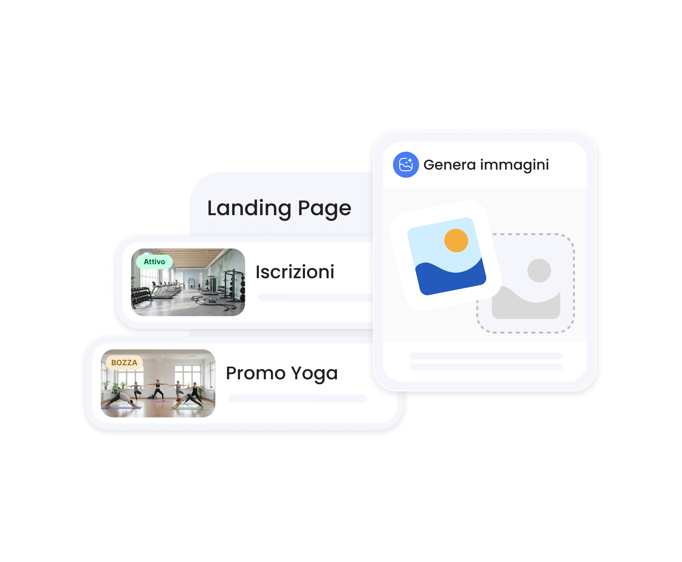 Con Social Builder generi immagini e testi per post, storie e caroselli direttamente dal gestionale, in pochi istanti, con il supporto dell’AI. Inoltre hai la possibilità di creare landing page dedicate per acquisire clienti o promuovere eventi, palinsesto e promozioni tramite link su whatsapp o sui tuoi canali social